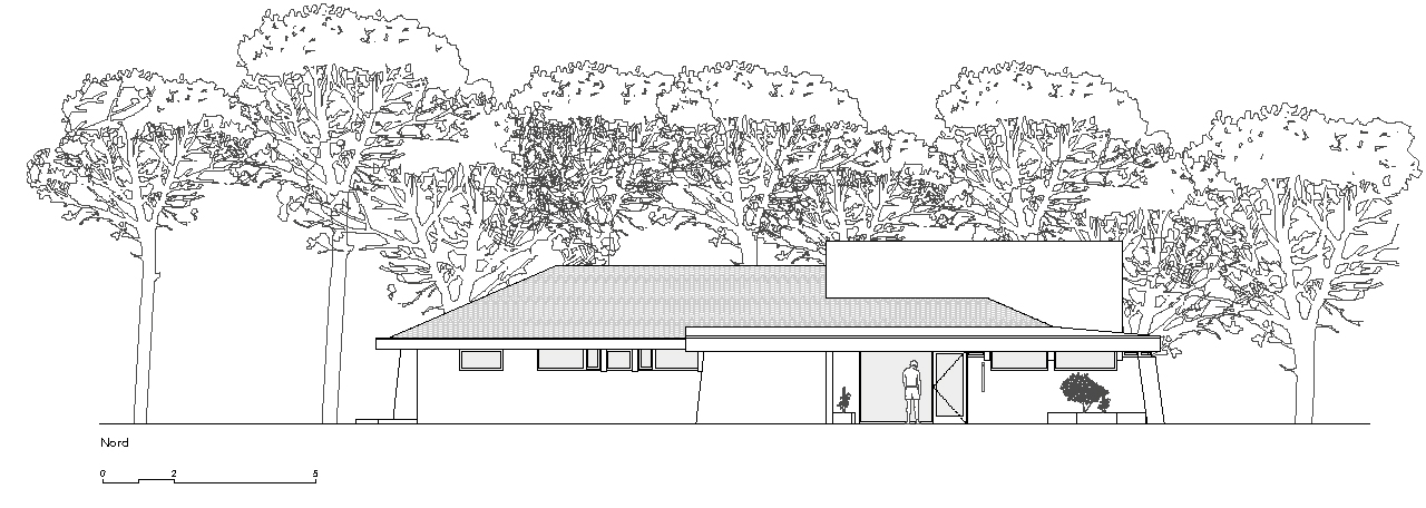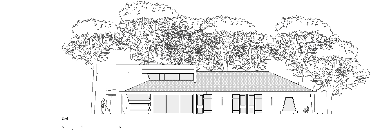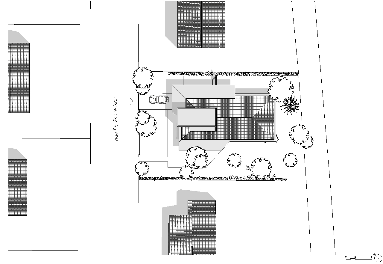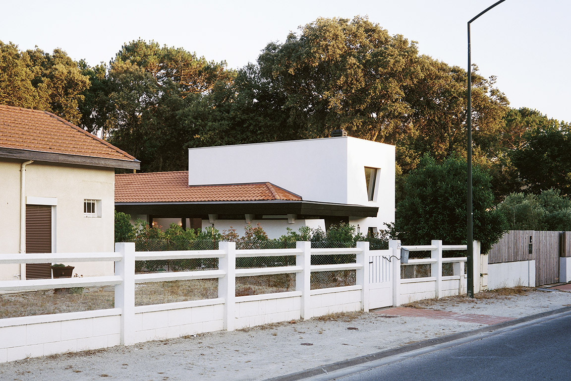Aucune modification volumétrique n’a été opérée. La toiture palliative, mono-pente du R+1 a été supprimée pour restituer la volumétrie rectiligne en toiture terrasse épousant la skyline.