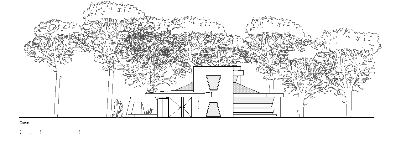Des ouvertures trapézoïdales ont été ajoutées sur certaines façades dans le même vocabulaire que la création d’origine.