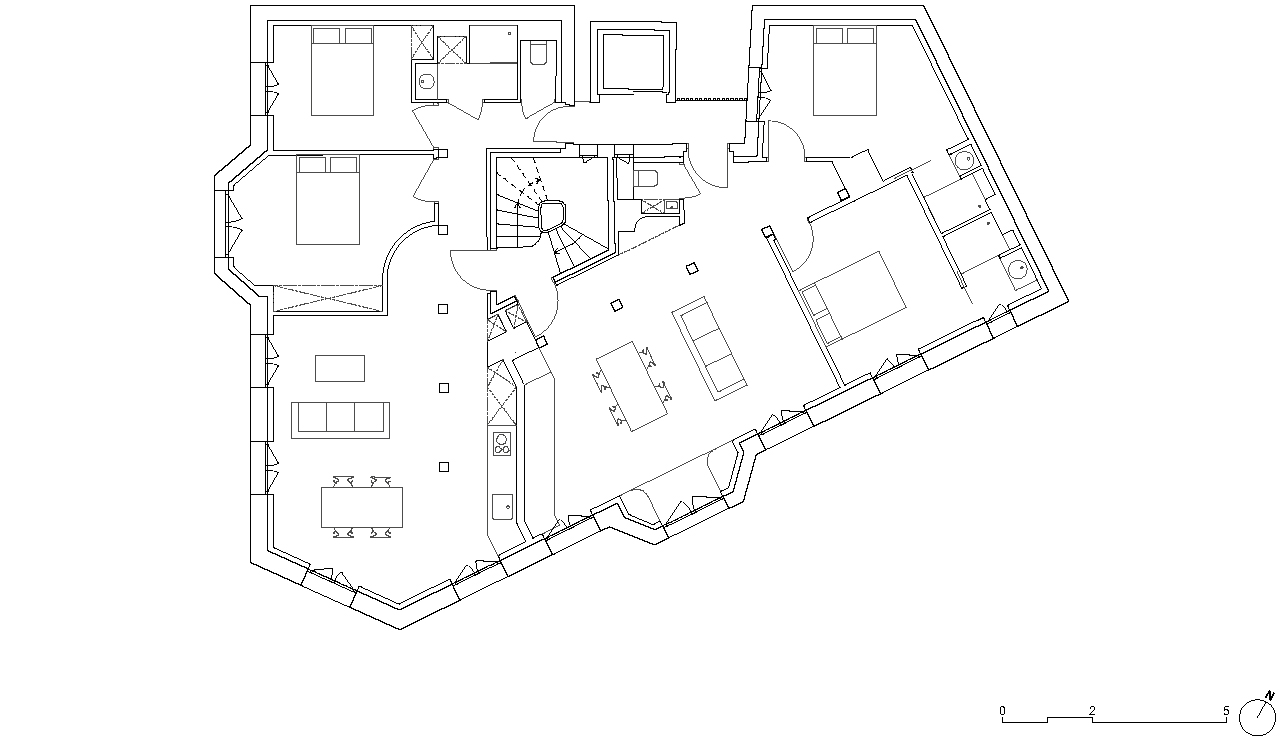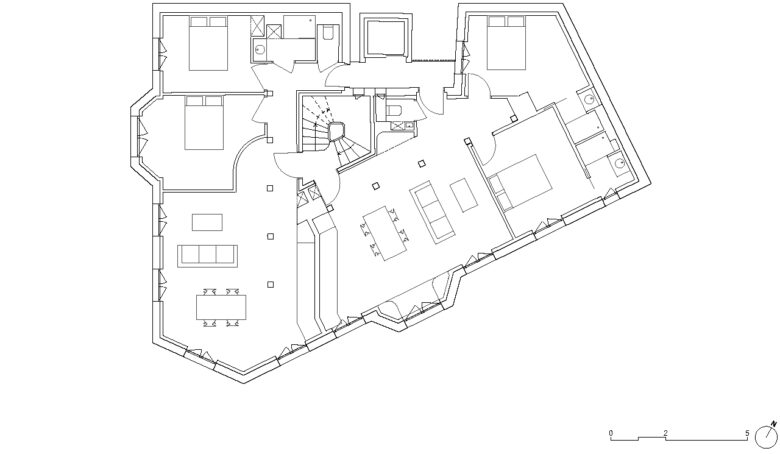 Originellement immeuble d’habitation, nos clients ont souhaité lui redonner vie sous la forme d’une chambre d’hôte offrant de grandes chambres familiales et un lieu commun convivial.