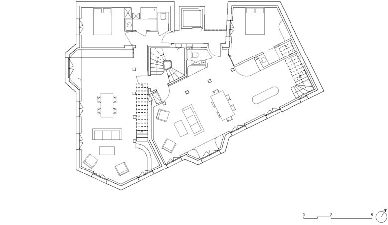 Deux terrasses sur le toit, ont été créées dans les niveaux supérieurs.